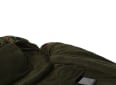Na vnější vrstvu, byl použit velmi příjemný a nešustící materiál „ Peach Skin “ broskvová kůže, který je v atraktivním kamuflážovém provedení. Tento materiál má tyto vlastnosti, je nepromokavý, ale při tom dýchá a odvádí přebytečnou vlhkost. Plně prošívaný microfleece tmavě zelené barvy, je vyplněn 100% dutým vláknem pro extrémní teplo a komfort. Zipy jsou po obou stranách, lze je rozepnout až k nohám a jsou izolovány, jak z vnitřní, tak vnější strany, aby se zabránilo nežádoucímu úniku tepla. Ve vnitřní části spacího pytle, naleznete kapsu na zip, která je určena pro mobilní telefon, či doklady. Pod hlavou je na zip odnímatelný polštářek, který zajistí opravdový komfort. Na obou stranách spacího pytle (u hlavy a nohou) jsou ze spodu našité převleky, které se pouze přetáhnou přes vršek a spodek lehátka a zajistí tak neomezený a bezpečný pohyb. Ve střední části spacího pytle je popruh, který se díky přezce snadno upevní k lehátku a zabrání kroucení spacího pytle. Spací pytel je ...