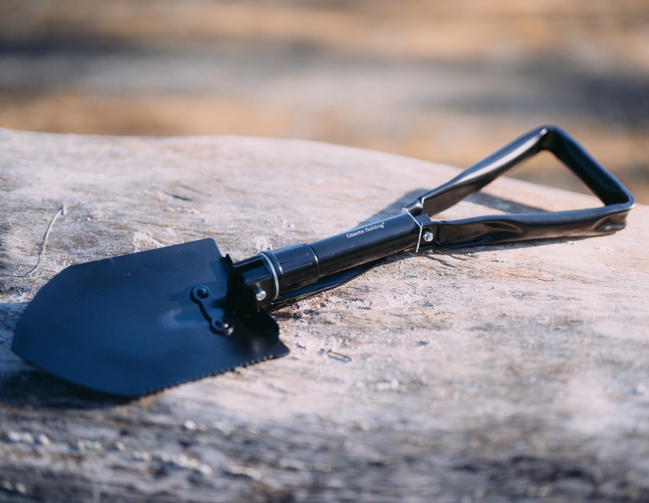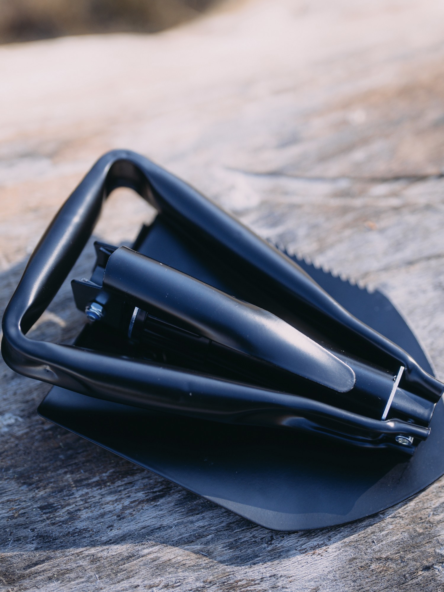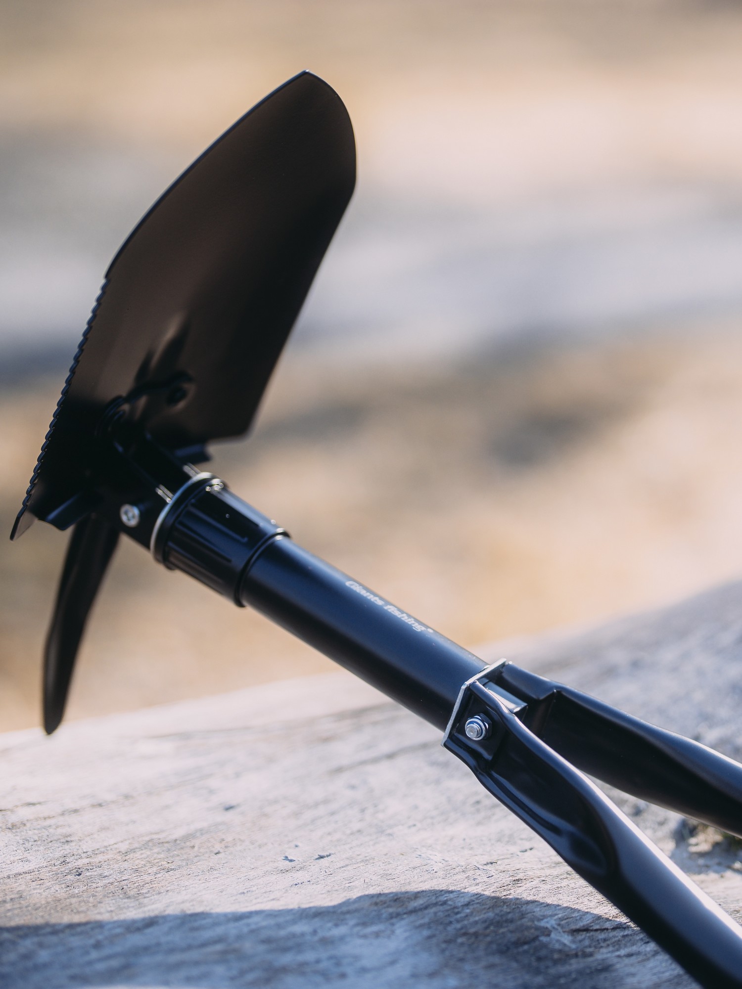 Všestranná skládací lopatka z ocelo-uhlíkové konstrukce se šroubovací hlavicí pro bezpečné uzamčení při používání.