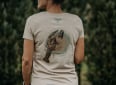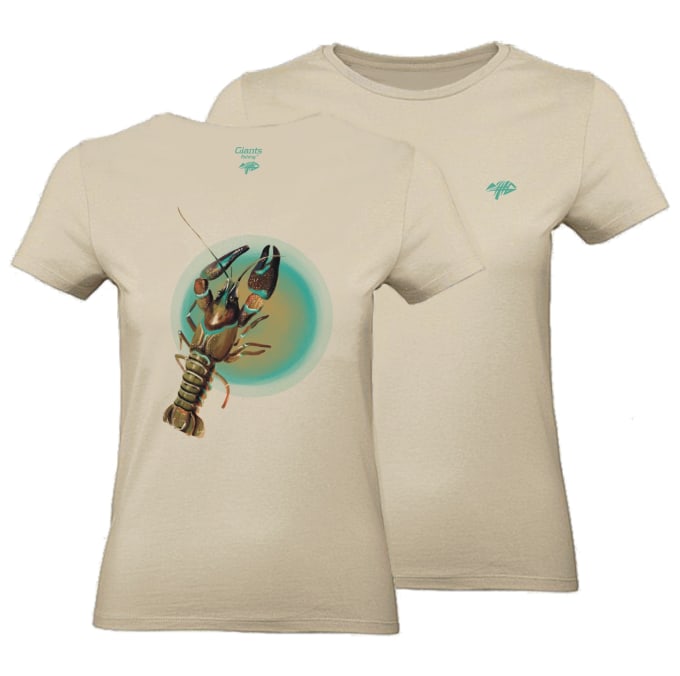 Kvalitní dámské tričko v béžové barvě s naším originálním designem Raka na zádech a decentním logem značky na prsou.