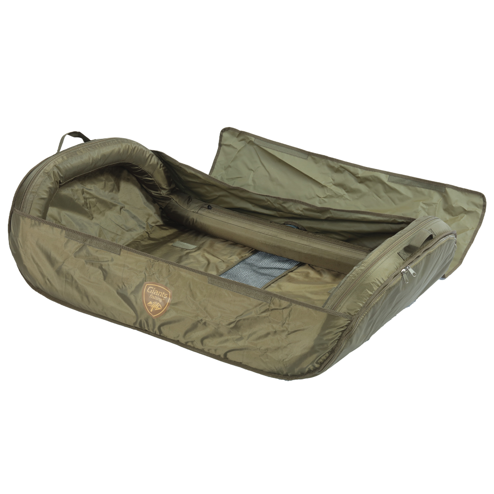 Jednoduchá konstrukce duše, která se rychle nafoukne a vyfoukne pomocí speciálního ventilu. Kolébkový tvar zajistí bezpečnost vašeho úlovku, aby z podložky nevyskočil. Síťované dno zajišťuje dostatek kyslíku pro ryby a lze pro použití podložky na břehu vložit dodávanou měkčenou obdélníkovou matraci. Díky svému promyšlenému designu a tvaru, můžete z každé strany otevřít otvory, které jsou na zip a rychle a bezpečně vypustit rybu zpět do vody. Vyrobeno z nylonu 210D, který má povrchovou úpravu z měkčeného PVC. Je dodáváno včetně nožní pumpy k nafouknutí podložky a přepravní taškou.